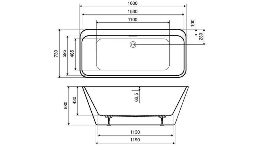 Szabadon álló akrill kád Szín: fehér Méret: 160x73 cm Űrtartalom: 240 l Az ár tartalmazza a kádtestet, az előlap borítást, a fehér Click-Clack lefolyót és a kádlábat. Réstúlfolyós kivitel. Garancia: 15 év